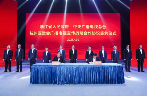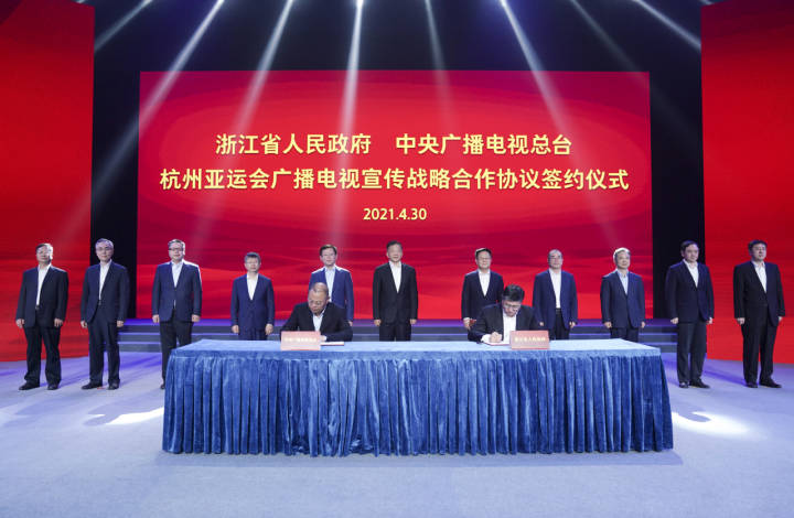 4月30日上午,中央广播电视总台浙江总站揭牌成立。省委书记、省人大常委会主任袁家军,中宣部副部长、中央广播电视总台台长兼总编辑慎海雄,共同为中央广播电视总台浙江总站和国家(杭州)短视频基地揭牌。胡元勇 摄 中央广播电视总台浙江总站揭牌成立 国家(杭州)短视频基地开工奠基 袁家军慎海雄揭牌 郑栅洁致辞 30日上午,中央广播电视总台浙江总站揭牌成立。同日,国家(杭州)短视频基地项目正式开工。省委书记、省人大常委会主任袁家军,中宣部副部长、中央广播电视总台台长兼总编辑慎海雄,共同为中央广播电视总台浙江总站和国家(杭州)短视频基地揭牌。 省委副书记、省长郑栅洁致辞。浙江省有关领导朱国贤、周江勇、陈奕君、成岳冲、刘忻,中央广播电视总台党组成员、副台长蒋希伟出席活动,一起为国家(杭州)短视频基地项目培土奠基。 4月30日上午,中央广播电视总台浙江总站揭牌成立。同日,国家(杭州)短视频基地项目正式开工。胡元勇 摄 慎海雄在致辞中表示,习近平总书记对浙江这片曾经工作、寄予厚望的热土,赋予了“重要窗口”的新目标新定位。组建中央广播电视总台浙江总站,肩负着服务党和国家工作大局的职责使命,承载着充分发挥总台宣传报道主力军压舱石的责任担当。总台将持续深入学习贯彻习近平新时代中国特色社会主义思想,进一步发挥宣传报道、新闻传播、媒体融合、文化产业、科技创新等方面的优势,充分挖掘浙江这座思想理论和发展实践的宝贵富矿,以“浙江之窗”的宣传报道生动诠释“中国之治”的独特魅力,为浙江奋斗“十四五”、开启新征程汇聚起强大正能量;进一步加强与浙江在主题宣传、媒体活动、数字经济、科技研发、公益行动、文旅项目、产业拓展等领域展开全方位、多渠道、深层次的战略合作,为浙江的高质量发展注入新的强大动能。 郑栅洁代表省委、省政府对中央广播电视总台一直以来对浙江的关心支持表示感谢。他指出,总台浙江总站的揭牌标志着双方合作迈上新台阶。近年来,总台聚焦浙江经济社会发展,播发了一系列有温度、有深度、有影响的宣传报道,对擦亮浙江工作“金名片”、提振干部群众干事创业热情都产生了积极影响。当前,浙江正按照习近平总书记“立足新发展阶段、贯彻新发展理念、构建新发展格局”的要求,以“忠实践行‘八八战略’、奋力打造‘重要窗口’”为主题主线,围绕高质量发展建设共同富裕示范区、争创社会主义现代化先行省,深入推进长三角一体化发展、数字化改革、海洋强省、山区跨越式发展、碳中和碳达峰等重大决策部署落地生根、开花结果。这既需要新闻舆论的保驾护航,也为新闻宣传提供了富矿。希望总台发挥好浙江总站的桥头堡作用,一如既往地关注浙江、宣传浙江、支持浙江,打造一批有浙江辨识度的新闻作品,助力浙江“重要窗口”建设。浙江将提供坚实保障,助力总台打造国际一流新型主流媒体。 4月30日,浙江省人民政府与中央广播电视总台签署《杭州亚运会广播电视宣传战略合作协议》。法鑫 摄 国家(杭州)短视频基地项目是经中宣部批准,中央广播电视总台与浙江省人民政府深化战略合作的重点内容,由中国国际电视总公司与杭州市人民政府共同合作建设,旨在打造面向国际、亚洲领先、国内一流的主流视听新媒体高地。项目奠基当天,中央广播电视总台大型融媒体节目《中国短视频大会》落户杭州。 同日,浙江省人民政府与中央广播电视总台签署《杭州亚运会广播电视宣传战略合作协议》。 |