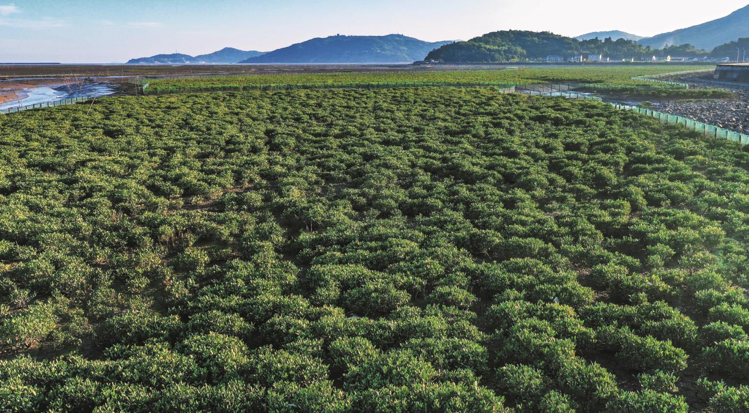 杨 晨 王 雯 推动经济社会发展绿色化、低碳化是实现高质量发展的关键环节。2025年,浙江深入践行绿水青山就是金山银山理念,锚定建设更高水平生态省战略目标,以优化产业结构、优化能源结构、优化交通运输结构和提升生态环境治理能力水平“三优化一提升”为着力点,协同推进降碳、减污、扩绿、增长,绿色发展在“浙”里按下加速键。 苍南县沿浦湾红树林 保护修复 生态环境越护越好 2025年7月,嘉兴市联合污水处理厂迎来重大技术升级突破——AOA低碳型深度脱氮技术一期工程正式进入通水试运行阶段。该技术通过科学重构传统活性污泥法的碳源分配与微生物作用路径,将传统“厌氧—缺氧—好氧”(AAO)流程优化为“厌氧—好氧—缺氧”(AOA)模式,在大幅减少内回流能耗的同时,显著提升了系统脱氮除磷效率。 为筑牢高质量发展的“硬件”基础,浙江坚持“每小时必争、每0.1微克必争”,加强全要素治理、全过程防控、全省域保护,推动生态环境质量提质进位。 治气再进阶。大力实施治气攻坚十五条,扎实推进工业源、移动源、扬尘源、生活面源“四源同治”和工程、结构、管理“三大减排”,综合运用走航监测、在线监测、高值点筛查、黑烟抓拍等监管手段,对面源污染加强管控,推动空气质量持续改善。2025年前三季度,全省PM2.5平均浓度23.9微克/立方米,同比改善1.6微克/立方米;优良天数比率90.0%,同比提升2.2个百分点。 治水再提标。持续推进钱塘江、太湖等重点流域综合治理和跨界水体共保联治,加快推进污水处理基础设施建设,全省城镇污水总处理能力提升至1930万吨/日,新(改)建污水管网501公里,建成专业化工生产废水集中处理设施6座。深入实施杭州湾海域生态修复提升六大行动和乐清湾、三门湾、象山港综合治理,深化推广“蓝色循环”模式,累计收集海洋废弃物9.1万吨。2025年前三季度,全省地表水国控断面Ⅰ—Ⅲ类水质比例98.7%;县级以上饮用水水源水质达标率保持100%;近岸海域海水水质优良率63%,同比提升7.1个百分点,创历史同期最好值。 净土又清废。高标准深化全域“无废城市”建设,会同联合国环境署举办“国际无废日”主题活动,累计培育“无废集团”50家、“无废商业街区(商圈)”50个,新增“无废城市细胞”849个。截至2025年9月底,全省建成建筑垃圾消纳场所606处,能力近6亿吨;新增危险废物资源化利用能力23.8万吨/年,危险废物填埋量占比约7.0%,同比下降2.9个百分点;治理污染土壤和地下水26.03万立方米,提供净地面积56.49万平方米。 低碳发展 产业结构越转越优 在温州龙港市循环经济产业园,美丽景观随处可见。这里看似一座休闲公园,实际上是一个增绿减碳、变废为宝的新产业链大工厂。园区布局了再生水厂、固废焚烧厂等处理设施,构建“水、电、热”绿色循环链,正全力打造全国首个“污染物”和“碳”两个指标“双近零排放”综合处置产业园。 2025年,浙江深化“腾笼换鸟、凤凰涅槃”攻坚行动,持续推进传统产业焕新升级,加快发展绿色低碳产业,全面推进园区绿色低碳循环改造,特色现代化产业体系攀“高”向“新”逐“绿”迈出新步伐。截至目前,全省累计推动生态环境领域和七大重点行业设备更新1.7万余台(套),改造开发低效工业用地4.3万亩、帮扶低效企业1197家。 在能源领域,协同增效同样发力。 浙江坚持以“清洁替代”筑牢低碳发展根基,通过大力发展沿海核电、深远海风电、光伏等举措,有力提升非化石能源供给比重,为“十四五”规划圆满收官和“经济大省勇挑大梁”提供了高质量的能源保障。截至2025年9月底,全省新增非化石能源装机1756万千瓦,占新增装机比重85%以上,特别是光伏新增装机1302万千瓦,累计突破6000万千瓦,已超过煤电,成为省内第一大电源。同时,首创节能审查“双评估”制度,腾出用能空间500万吨标准煤以上,全年能耗强度进一步下降。 迈向绿色生活,交通“换挡”不可或缺。通过深化机动车监管“一件事”改革,聚焦车、油、路、企、物流园区等全要素发力、全方位监管,全省交通运输结构不断优化。2025年,浙江累计淘汰老旧柴油货车和非道机械6.3万辆,其中国三柴油货车和国一非道机械已基本淘汰;大力推广新能源汽车,城市公共服务车辆新能源化比例已达90%;加快绿色交通基础设施建设,火电、钢铁、水泥等重点行业和沿海主要港口码头清洁运输比例达81.5%。 改革创新 转换路径越拓越宽 安吉通过竹林碳汇改革,创新碳汇收储机制,让“竹林空气”成为真金白银;衢州通过生态账户的GEP(生态产品总值)自动监测核算,带动村集体和村民年增收6.78亿元;丽水创新打造“山”字系区域公共品牌集群,走出了一条生态富民、绿色崛起的跨越式高质量发展之路…… 2025年,浙江持续拓宽绿水青山就是金山银山的转化通道,让环境资源变成可交易、可增值的绿色资产。 林业富民产业持续壮大。截至目前,全省森林覆盖率达58.55%,居全国前列;森林蓄积量增至4.15亿立方米,森林植被碳储量达3.35亿吨。2025年,浙江通过持续深化集体林权制度改革,深入推进“千村万元”林下经济增收帮扶工程建设,开展花卉业“林苗一体化”改革试点等举措,造就了6610亿元的年度林业总产值。 EOD模式创新实践高标准推进。浙江始终坚持高标准推进EOD模式发展,以产业开发反哺生态环境治理。目前,全省入库项目50个,拉动投资